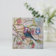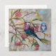 Pintura OIl representando duas aves Coracias Caudatus (roller lilac assado) em galhos florescentes de árvores e um fundo leve.