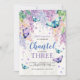 Lilases e Borboleta| Convite de aniversário - Convite floral elegante e moderno, com lilases aquosas e borboletas com folhas verdes e peludas, com letra tipográfica moderna e livre, com letra escrita à mão. O verso do convite apresenta pétalas lilás e borboletas. Personalize com seu próprio texto/detalhes! Para mais personalização: (1) Clique no botão "Personalizar" e use nossas ferramentas de design para modificar este modelo. Nem todos os trabalho de arte podem ser modificados. (2) Se preferir papéis mais grossos, você pode considerar escolher o tipo de papel correspondente.