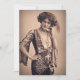 Fotografia de imagem recriada em uma imagem rosa suave. Imagem enfatiza sua moda de ornamentado, incluindo penas e miçangas. A imagem retrô original, por volta de 1900, foi encontrada no dominio público.