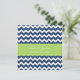 Os cartões do convite do casamento em azuis marinhos escuros elegantes e contemporâneos, em ziguezagues retros brilhantes do verde limão e os brancos da viga listram o teste padrão. Personalize estes convites com seus detalhes do casamento. Disponível em produtos de harmonização para todo seu casamento precisa.