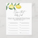 Cartão de chá de fraldas neutro com cor d'água em forma de limão, com aspecto neutro do gênero, com ilustração de um limoeiro com as frutas dos citrinos. Use as ferramentas de design para editar o texto, alterar a cor e o estilo da fonte para criar um design de convite exclusivo. Itens correspondentes disponíveis.