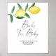 Cartão de chá de fraldas neutro com cor d'água em forma de limão, com aspecto neutro do gênero, com ilustração de um limoeiro com as frutas dos citrinos. Use as ferramentas de design para editar o texto, alterar a cor e o estilo da fonte para criar um design de convite exclusivo. Itens correspondentes disponíveis.