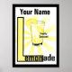 Uma ilustração gráfica de um copo de limonada com o texto Limonada Freshly e uma modelo pronta para o seu nome. O poster é mostrado em papel mate. O papel e o tamanho são personalizáveis.