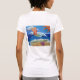 A frente da camisa tem o logotipo DonnaBellas Angels. As costas mostram o Anjo Cancer de Limpeza. A pintura mostra um anjo de surfe laranja brilhante num oceano azul com um sol brilhante. A espuma do mar lava-se na areia que rodeia as palavras "Limpar o Cancer". Há uma casca de mar rosa na praia. A pintura foi feita em acrílico e aspergida com brilho para textura e brilho.