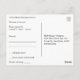 Este design de cartão postal R.S.V.P. limpo e elegante apresenta a mensagem "r.s.v.p." na frente, juntamente com um nome de evento personalizado. Ele também apresenta um formulário de RSVP personalizado na parte traseira para que o destinatário seja concluído, juntamente com um endereço personalizado ao qual as placas de RSVP completadas seriam enviadas. Cartões de RSVP como este podem ser usados para descobrir quem vai participar de uma festa de formatura, de uma recepção de casamento, de uma festa de aniversário de casamento, de uma festa de janto, ou de alguma outra celebração.