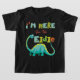 Bela camisa para os rapazes celebrarem o Eid. Traga um sorriso no rosto com esta camiseta de dinossauro com um ditado engraçado. Engraçada imagem de dinossauro alegre e escrevendo na frente do chá.