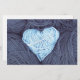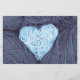 Lindo fotografia de um coração feito de lã pálida e azul em um fundo azul mais escuro. Eu perfurei uma agulha de tapeçaria através dela. Como uma flecha através do seu coração! Uma divertida e peculiar tomada de amor e romance!