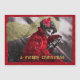 Foto antiga da era eduardiana de 1900, renderizada digitalmente e colorida, com uma garota de casaco vermelho e chapéu com flor de poinsettia e véu no volante, está nevando e ela está sorrindo e dirigindo um carro, com a mensagem dourada "Um Feliz Natal". Cartão de Natal perfeito para colocar um sorriso no seu rosto.