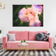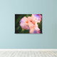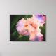 Esta canvas mostra uma foto de uma linda pêssego e íris roxa.