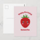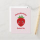 Um cartão de aniversário cor de rosa com mensagem personalizável e uma ilustração de morango fofo em estilo Kawaii. Envie-o para o aniversário do seu amigo ou de um membro da família!