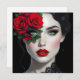 Mantenha-se em contato com esta bela placa de vazio que apresenta uma ilustração ai de uma mulher negra e branca com rosas vermelhas.