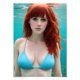 Uma bela mulher de cabelo comprido e vermelho em uma fotografia submarina azul gerada por AI
