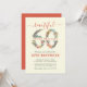 Celebrar 60 belos anos com estes convites de festas de aniversários únicos. Design apresenta a mensagem, "Lindo" no moderno roteiro de caligrafia "em" e depois o nome da garota de aniversário no meio do número 60 (com letras florais). Então a mensagem lê Linda aos 60 (nome aqui). Por favor, junte-se a nós para celebrar o 60º aniversário dela. Espaço reservado para data/hora/local e R.S.V.P. para personalizar com suas próprias informações.