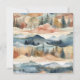 Paisagem aquosa de pastel de árvores e colinas.