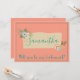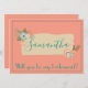 Uma bela carta de proposta da dama de honra, seu nome é escrito em letra cursiva teal em uma bela faixa combinada com um fundo cor de pêssego. "Você será minha dama de honra" está escrito na parte inferior também no final. Peça o seu hoje!