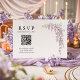 confirmação de wisteria em aquarelacartão de confirmação floral eleganteconfirmação de casamento digital modernapapelaria de casamento no jardimdetalhes românticos de casamento roxoconfirmação minimalista com código qrplanejamento de casamento digitalconfirmação floral chic