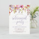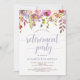 Este convite de festas de aposentadoria tradicional apresenta flores bonito de aquarela em tons suaves de rosa, azul, roxo e branco, com folhas verdes e roxas, e a tipografia moderna em azul pastel macio.