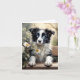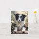 Cartão de cumprimentos em branco de um adorável cão border collie do lado de fora cercado por flores. Pode ser usado para qualquer ocasião.