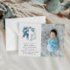 Comemore o batismo do seu bebê com este lindo desenho de flores azuis marinho com uma foto do seu bebê. O texto, juntamente com outras características deste design, podem ser personalizados. A imagem pode ser substituída e editada.