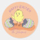 Adesivos de Páscoa adoráveis com um pequeno pintinho amarelo que acabou de sair do ovo. Personalize com o nome da sua família.