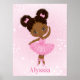 Este pôster de parede é projetado com uma linda bailarina afro-americana vestindo um tutu rosa. Fundo azul lindo com estrelas. Linda bailarina negra com dois coques. Você pode personalizar o nome da menina ou adicionar qualquer texto clicando na opção "PERSONALIZAR". Este pôster de parede será um enfeite ideal para o quarto da menina. Obrigado por visitar minha loja e espero que você goste do design TheCreativeMill.