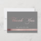 caligrafia rosa dourado rótulo personalizado "obrigado" em um fundo cinza defumado com borda rosa dourado e seus monogramas em fonte sans serif. O verso tem sua foto personalizada para agradecer às suas pessoas especiais com estilo
