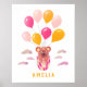 Lindo Urso de Pelúcia Balões Rosa Poster Nome da C