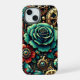 Bonito tema floral steampunk com engrenagens metálicas, rosas e joias. Dourado, burgundy e teal.