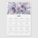 Um calendário de geladeiras magnéticas com um conjunto de lindas flores roxas. Parece bom em casa e no escritório.