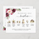 Linda linha do tempo do casamento e programa de aquarelas para impressionar seus hóspedes! Detalhe da caligrafia escrita à mão elegante. Delicar detalhes florais de aquarelas em uma bela mistura de tons de burgundy, blush, rosa, rosa empoeirado e bagas de mauve. Imagens da linha cronológica de cores d'água do fino artista em matizes de ouro e coordenando detalhes florais para o buquê no canto. Capacidade de personalizar informações no verso para atender às suas necessidades e até mover imagens de linha do tempo e texto para uma ordem diferente selecionando "personalizar ainda mais". Parte da nossa coleção "Romance Floral" com uma variedade excelente de produtos coordenadores. Visite a coleção completa clicando no link abaixo "Outros produtos desta coleção".
