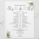 Apresentando caligrafia com script de na moda e verde floral, esta linha cronológica do calendário de casamento com na moda pode ser personalizada com seus detalhes especiais do dia. Projetado por Thisnotme©