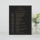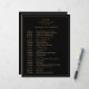 Linha do tempo simples de casamento com um design moderno, mas elegante, com seu monograma de duas letras no topo e seus detalhes cercados por uma fina fronteira. Todo o texto está em dourado falso sobre um fundo preto e pode ser alterado para qualquer cor desejada clicando no botão "personalizar". Um design chic e na moda que é excelente para um casal minimalista.