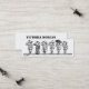 Cartão estreito preto e branco com uns desenhos animados do vintage de seis soldados na vária saudação dos uniformes. Texto customizável no verso