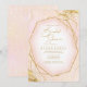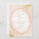 Um fundo de aquarela em tons de rosa dourado é coberto por um desenho abstrato de linhas douradas finas e efeitos de brilho cintilantes para criar as peças deste lindo conjunto de casamento. O convite de chá de panela mostrado aqui também apresenta uma bela moldura em gradiente para conter todo o seu texto. Adicione facilmente seus próprios nomes, data do casamento e detalhes do evento usando o modelo fornecido. Procure ID867 para ver outras peças e opções de cores para este conjunto.