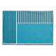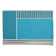 Este travesseiro tem um design geométrico de um retângulo teal grande no canto superior esquerdo, listras teais mais escuras no canto superior direito, um retângulo teal menor mais claro abaixo das listras e linhas pretas na parte inferior. Se você gosta do design, mas prefere cores diferentes, me mande mensagem.