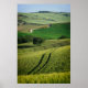 Poster de uma paisagem quase abstrato com linhas verdes curvas nos campos de cevada entre Pienza e San Quirico d'Orcia, no Vale de Val d'Orcia, na Toscana, Itália. decoração de excelentes!