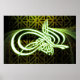 Belo e moderno muçulmano bismillah caligraphy poster com ornamentos arábicos verdes e rastros leves. Bismillah-Rahman ir-Rahim, e é uma frase belamente poética que oferece discernimento profundo e inspiração brilhante. Foi frequentemente dito que a frase Bismillah ir-Rahman ir-Rahim contém a verdadeira essência de todo o Corão, bem como a verdadeira essência de todas as religiões.