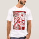Impressão de corte de madeira original de um leão, em vermelho em uma camiseta.