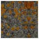 O teste padrão neste tecido vem de uma fotografia do líquene que cresce no granito. O líquene brilhante do amarelo alaranjado fornece um pop da cor contra a rocha cinzenta e branca.