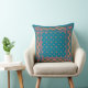 Um bonito Travesseiro decorativo ou Cushion, com um padrão de padrões de lírios cor-de-rosa e não combinando em um fundo azul profundo, de uma colagem de papel pintada manualmente por Judy Adamson. Parte da coleção 'Lily Pond' de Posh & Painterly.