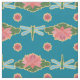 Lírios de água na moda e Dragonfly em Tecido Azul
