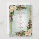 O convite de casamento de flores exóticas com sotaques dourados sobre fundo verde macio.O texto é totalmente personalizável. lírios e rosas. O modelo pode ser utilizado para qualquer ocasião especial.