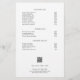 Lista de preços moderna e profissional, preto e branco, apresentando um design simples e mínimo com seu nome em um script elegante e fonte sans serif contemporânea. O modelo inclui várias seções divididas para seus serviços em um layout minimalista. A parte traseira tem as suas informações de contato e o código QR opcional. Se preferir, o código QR pode ser removido na ferramenta de edição de design.