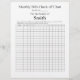 Aqui está uma página na qual você pode adicionar suas contas à lista e a cada mês quando você pagar a conta, verifique-a para acompanhá-la. Personalize com o nome de sua escolha. Isto é simples com fundo preto e branco. Personalize se você deseja um fundo de cor diferente. No topo da página, diz-se "mensalmente letras cheque o gráfico do ano ____" e também diz "para a família de Smith".