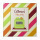 Um azulejo da cozinha que caracteriza uma ilustração de um fogão verde retro sobre um fundo de cor-de-rosa, de verde, de alaranjado, Borgonha, e listras da diagonal do ouro. Personalize com seu nome.