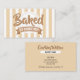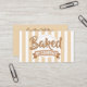 Design moderno de cartão de visita de catering com fundo de listras bege claro, fontes manuscritas modernas e layout simples. Esses cartões de visita de padaria neutros apresentam um bege pastel suave ou você pode editar as cores para qualquer cor que desejar - ótimo para chefs de pastelaria, padeiros e catering. Adicione o nome da sua marca ou logotipo e faça deste design de cartão de visita de padaria feminino o seu próprio.