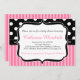 Um convite para Chás de fraldas Elegante, listras cor-de-rosa, bolinhas pretas, azuis e brancas. Por Caroline Leskiw em Designs felizes de Pixel