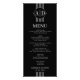 Este cartão de cardápio mostra uma sofisticada combinação de iniciais brancas e listras pretas. O design apresenta uma série de listras verticais elegantes, complementadas por um quadro circular que exibe elegantemente as iniciais do casal. Adicionando um toque de romance, dois corações delicados adoram o quadro. Com sua estética minimalista, essa design é a escolha ideal para casais que buscam um ambiente refinado e formal para sua celebração noturna.