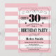 O convite do aniversário de 30 anos cor-de-rosa e o branco listram a tipografia. Elogios a 30 anos. Aniversário adulto. Aniversário masculino dos homens ou das mulheres. Miúdos menino ou senhora Adolescente Adolescente Bday Convite da menina. 13o 15o 16o 18o 20o 2ø 30o 40th 50th 60th 90 100th do 80 do 70. Alguma idade. Para uma personalização mais adicional, clique por favor "personalizam-no" botão e usam-nos nossa ferramenta de design para alterar este modelo.