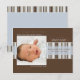 "Listras de Inverno" anúncio de nascimento em foto marrom/azul. Personalize este modelo moderno e elegante de cartão postal com a foto e detalhes do seu bebê para um anúncio de nascimento único.